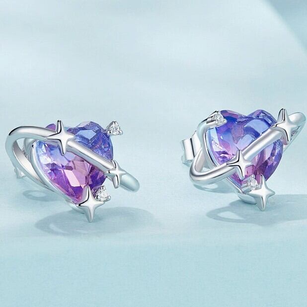 SP002 ハートのパープルグラデーションピアス