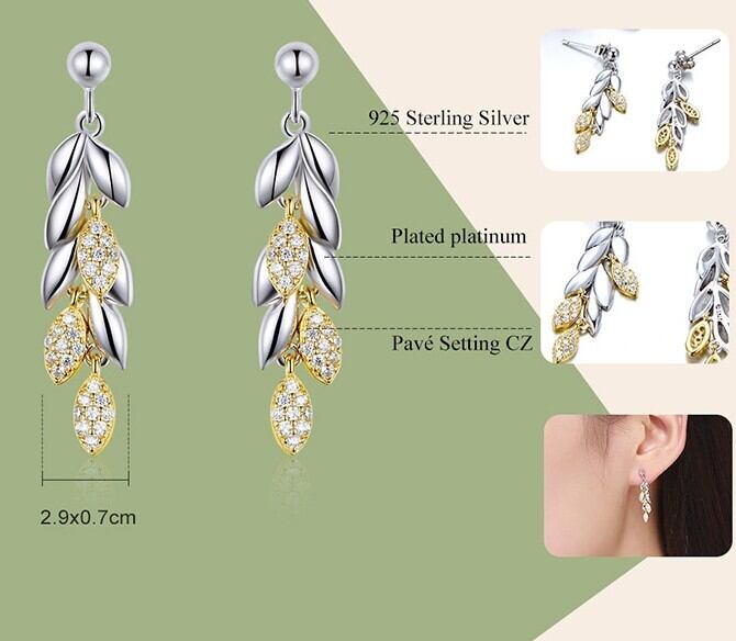 SP004 煌めく小麦の葉のドロップピアス シルバー