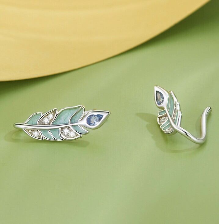 SP006 みどりの羽根のピアス シルバー