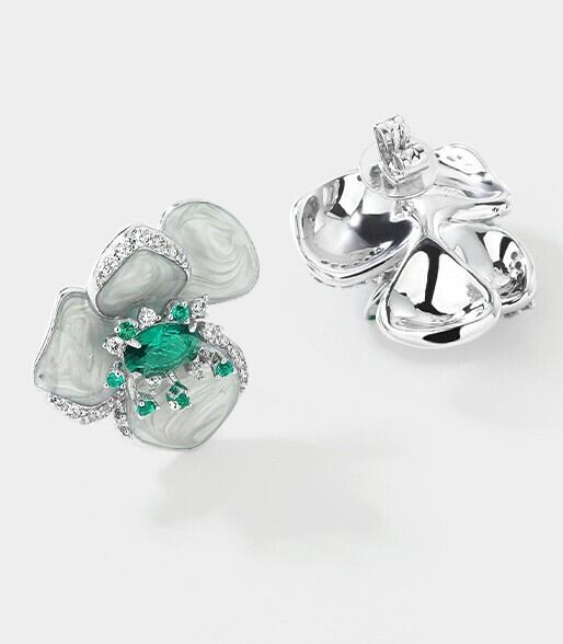 ✨️縁取りがキレイな白金の花に、エメラルドがゴージャスに浮き出たデザインのピアスです。