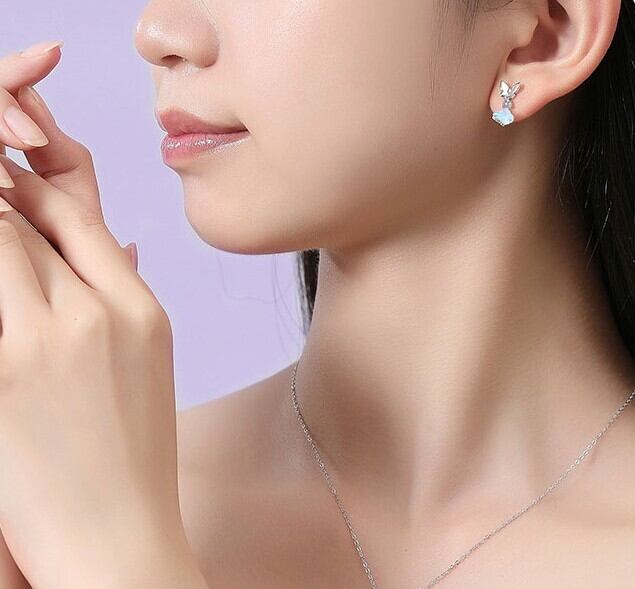 ✨️左右違うデザインが面白く、ジルコンとムーンストーンで飾られています。