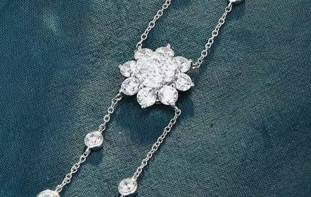 ✨️ブリリアントカットが美しいモアッサナイトを中央に、ジルコンで囲ったひまわりのデザインのネックレスです。