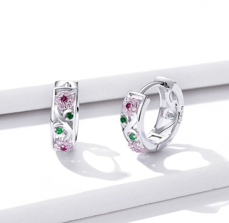 ✨️カラフルなジルコンが花園のイメージでデザインされたフープピアスになります。