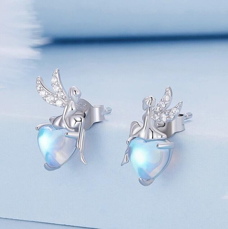 ✨️♡のムーンストーンの上でお喋りに夢中な妖精をデザインしたピアスになります。