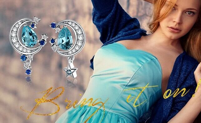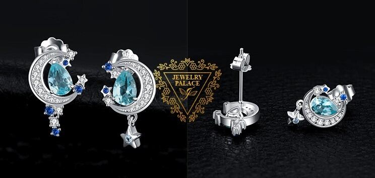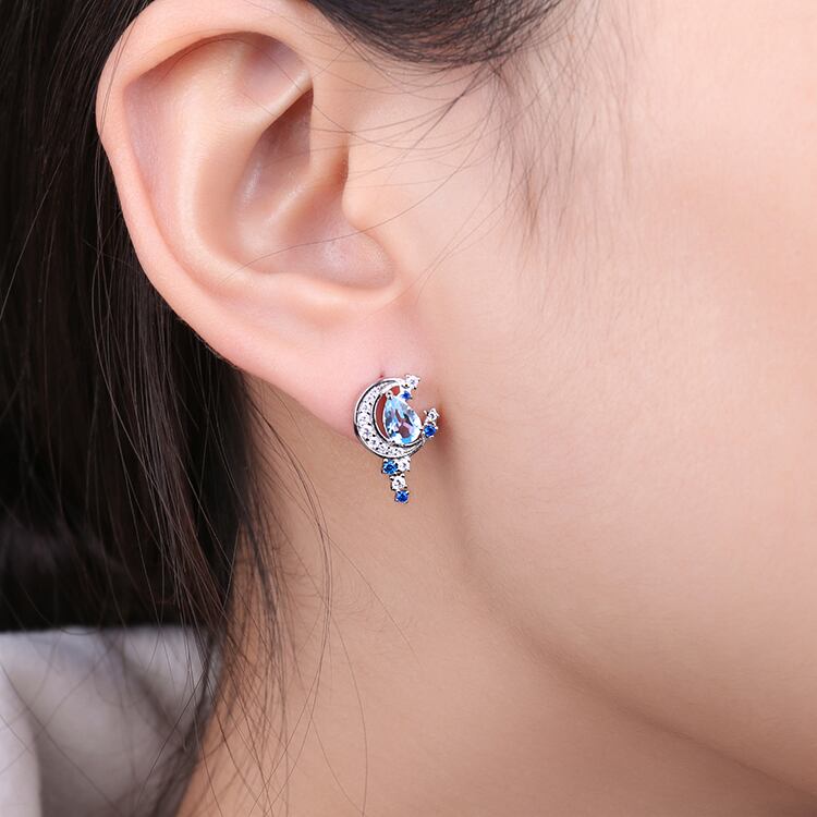 SP026 三日月と星のブルートパーズイヤリング シルバー925