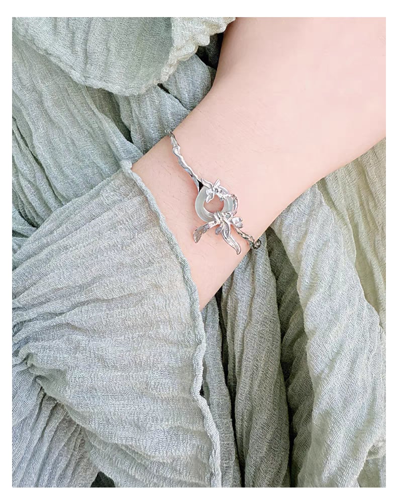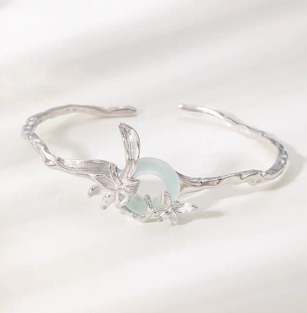 OB001 蘭の花と翡翠のブレスレット シルバー925