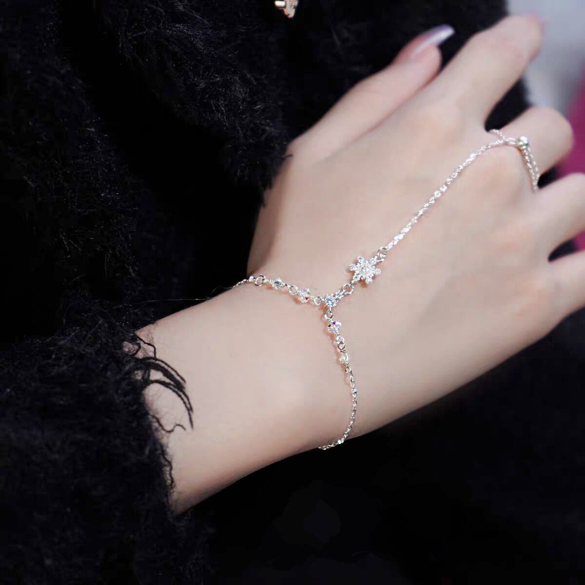 OB002 スノーフレークのブレスレット(リング一体型)シルバー925