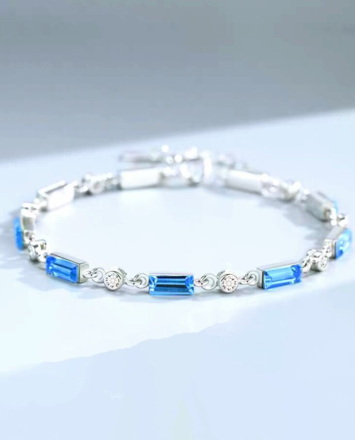 ✨️鏡の様なクリアブルーのクリスタルとキュービックジルコニアのブレスレットになります。