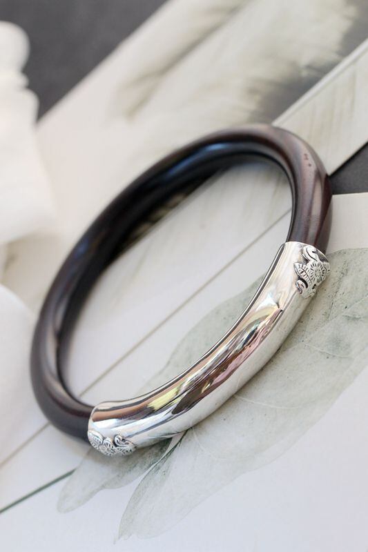 ✨️サンダルウッド(白檀)の木の質感がシルバーの光沢を引き立たせたブレスレットになります。