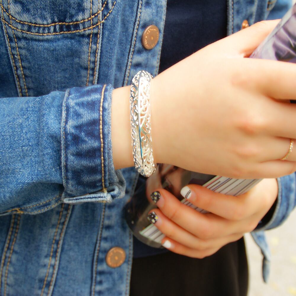 ✨️透かし模様のデザインが重さを感じさせないバングルになります。