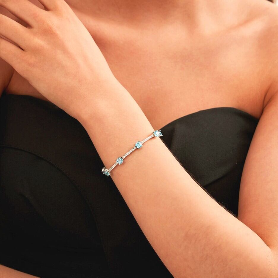 SB017 スクエアカットのアクアマリンブレスレット シルバー925